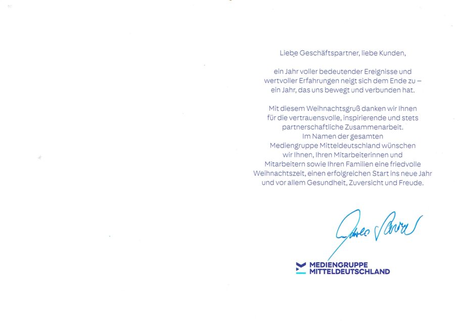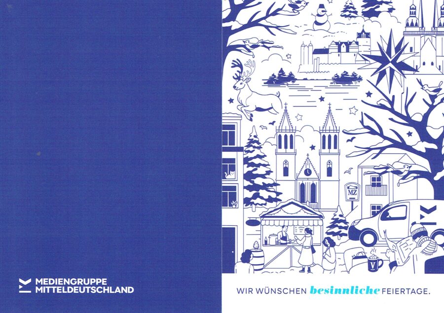 Weihnachtgrüße von der Mediengruppe Mitteldeutschland Veröffentlicht am 21. Dezember 2025 von fwermer Wünsche zu den Feiertagen, Karte: © Mediengruppe Mitteldeutschland Wünsche zu den Feiertagen, Karte: © Mediengruppe Mitteldeutschland