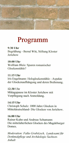 Die Teilnahme ist nur mit Voranmeldung unter info@stiftung-kloster-jerichow.de möglich. Die Tagungsgebühr beträgt 15,00 €