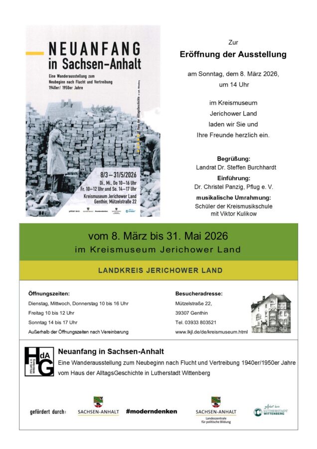 hiermit möchte ich sie auf die neue Sonderausstellung „Neuanfang in Sachsen-Anhalt“ im Kreismuseum aufmerksam machen.